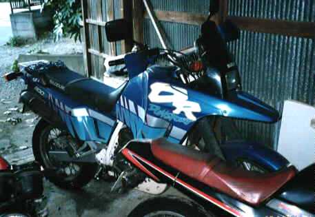 動機でした。 しばらくは砧の講習会で使ったり、ジムカーナに参戦したりするのに使って いました。ですからタイヤがやけにオン寄りです。 結構オールパーパスなバイクで、内輪では RG500 よりも DR800 の方が峠で 速いのではないかという噂もあります。 (いかに私がヘタッピかということですな…)